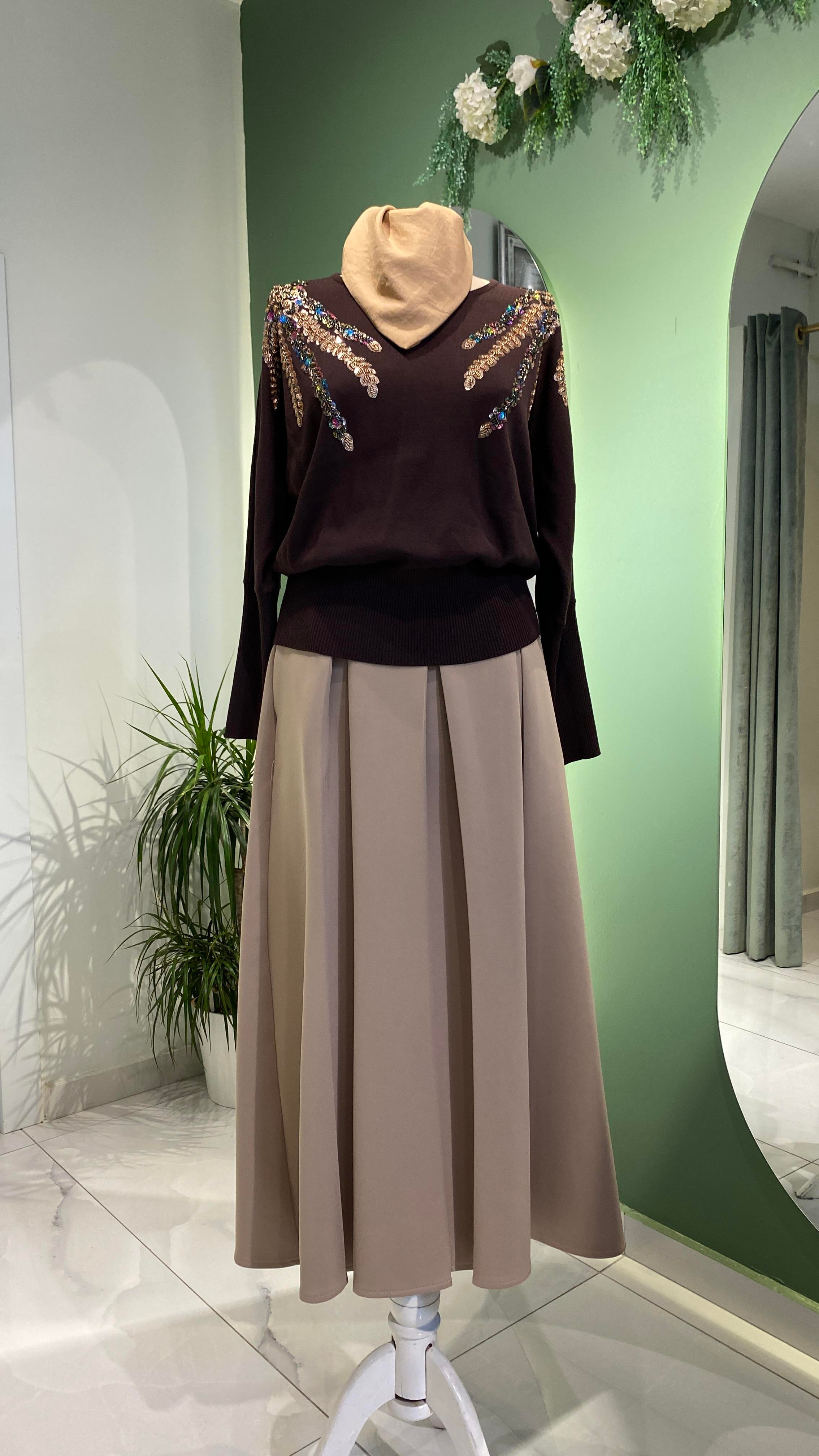 Triko nakış işlemeli yarasa bluz